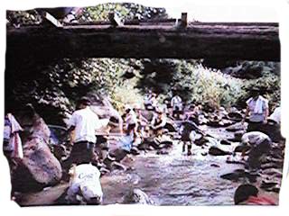 ○昔は、こんなに遊んでいたのに今は魚つりや基地作りくらいしかしないね。 川に入りにくいし、危険だと禁止されているからね。 ○ぼくたちも泳いだりしてみたいなあ。 ○今みたいに水道がなかったころは大変だったんだね。だから、飯田川は生活に必要だったんだ。 ○七夕の飾りを流すのは今でもやっているよ。 ○飯田川は夏に日照りが続くと水が少なくなってしまったので、ダムの水が農業に 使われるようになったんだって。いろんな苦労があったんだね。 |